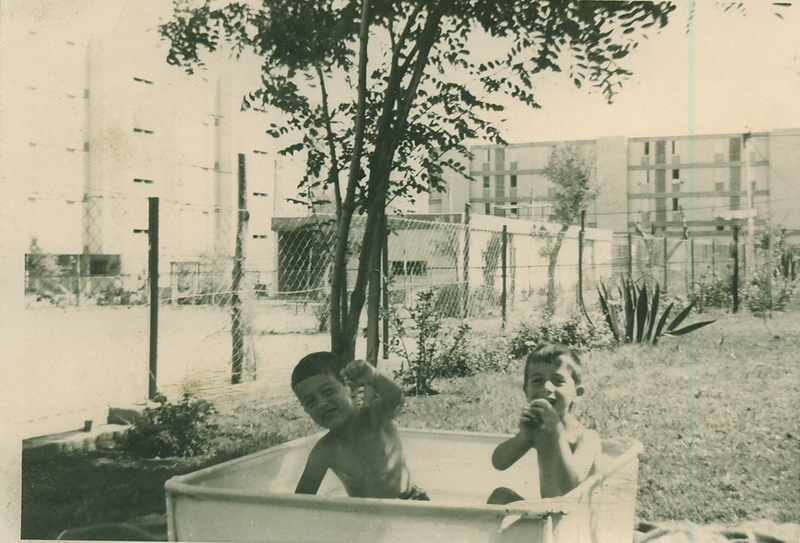 בבריכה על הדשא, בגינה בקרית ים - תשכ"ז (משמאל)