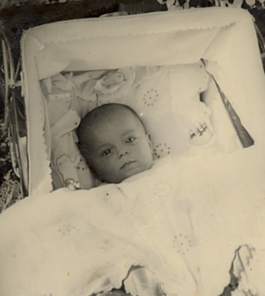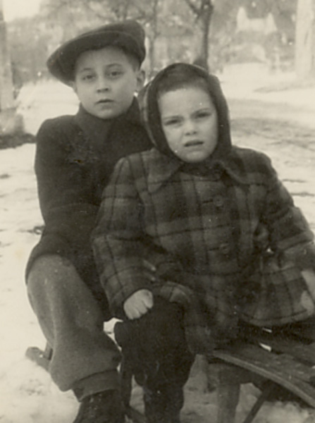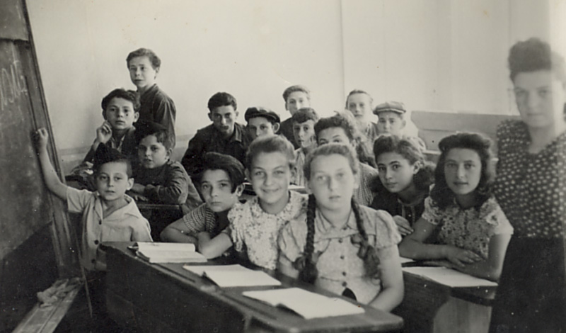 1947 - גרמניה. שמוליק, הצעיר בילדי הכיתה, ליד הלוח