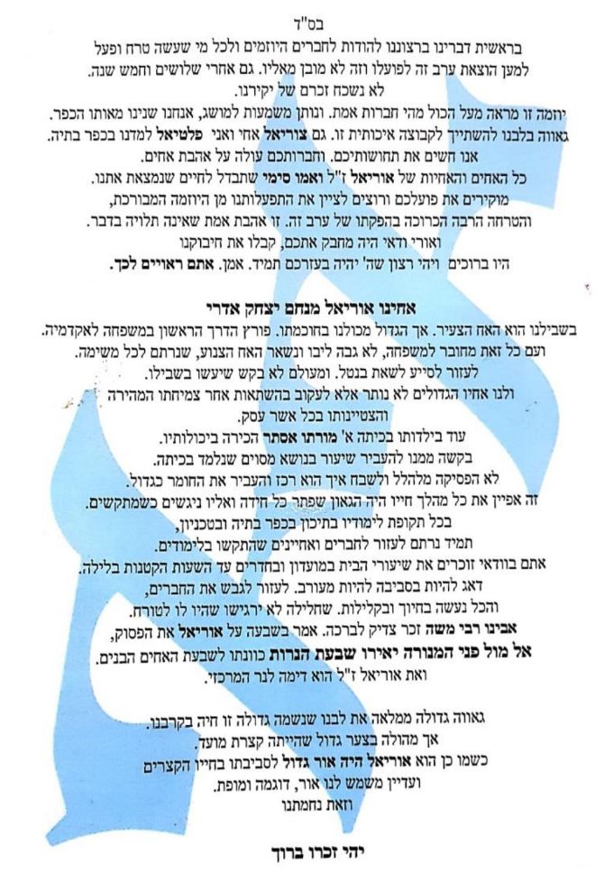 אלי בן שם – יו"ר יד לבנים משיא משואה