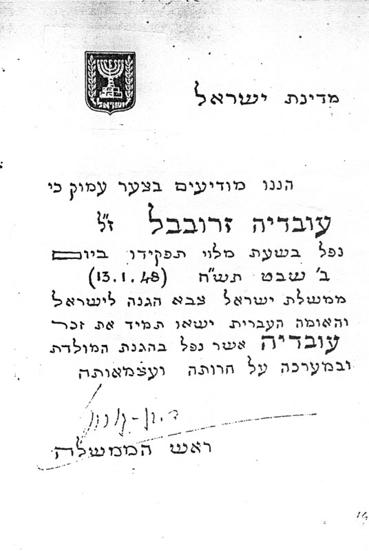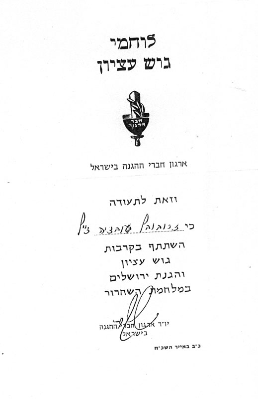 תעודת השתפות בקרבות גוש עציון במלחמת השחרור