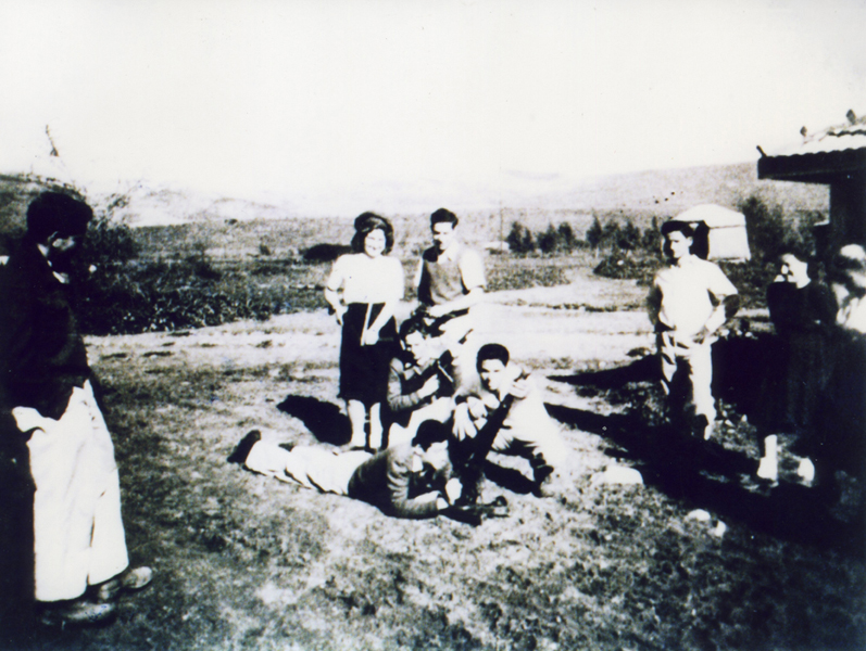 עם חברים מההכשרה בקיבוץ דגניה ב (משמאל)