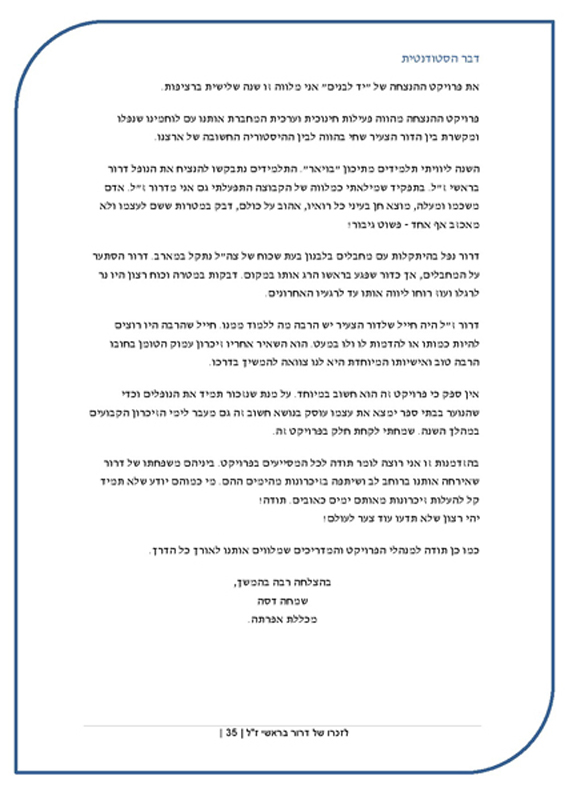 אלי בן שם – יו"ר יד לבנים משיא משואה