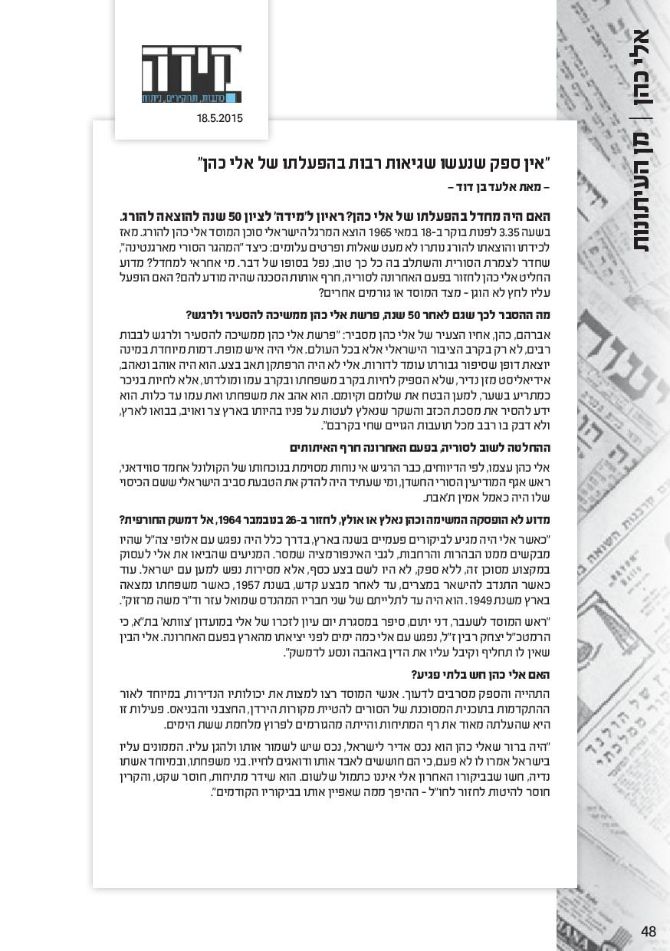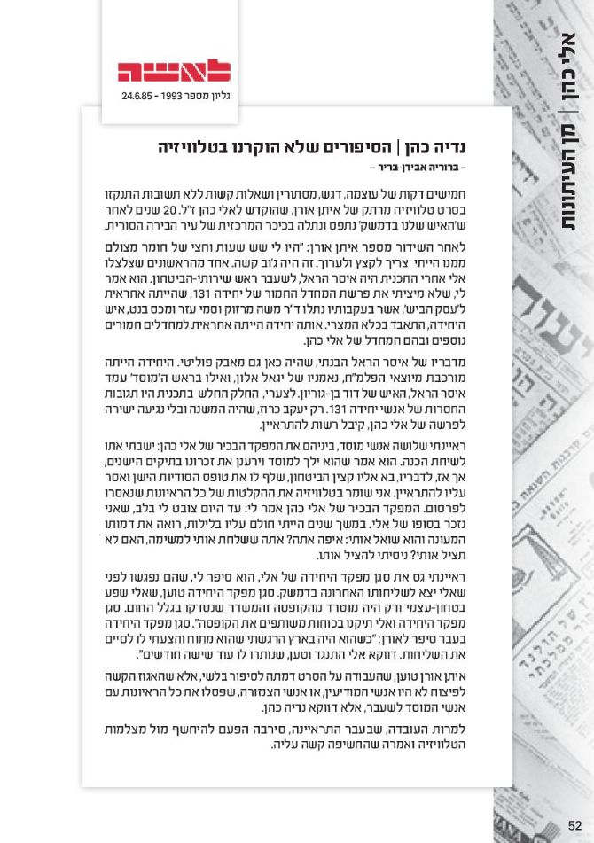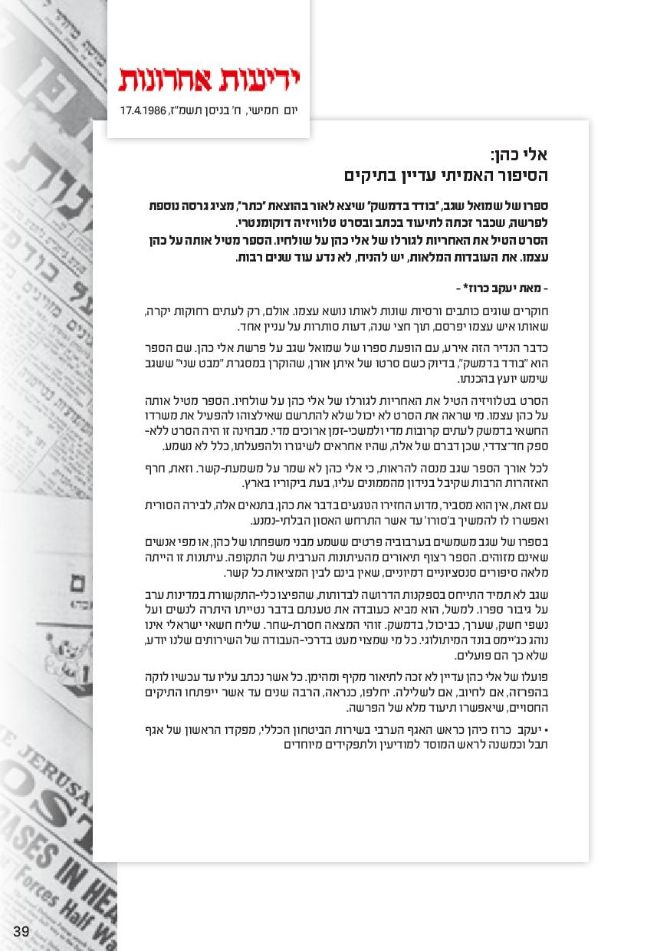 חוברת- אלי כהן: סיפור על גבורה ומסירות נפש