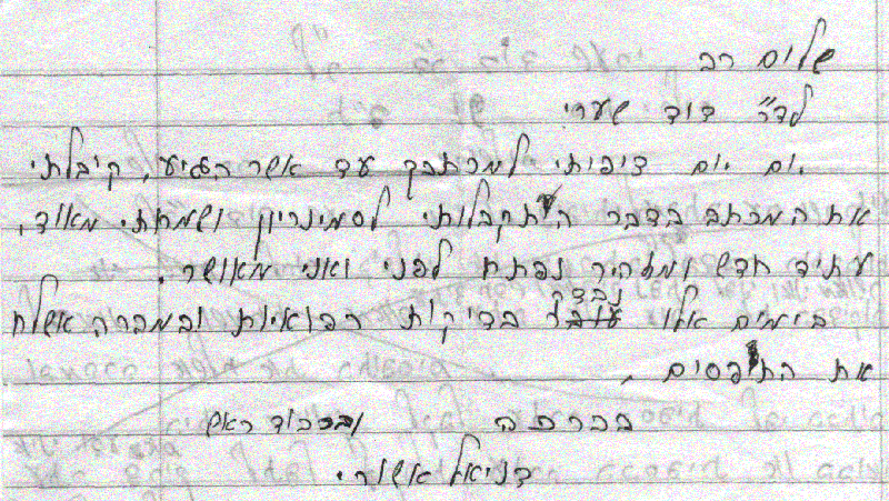 מכתב לד"ר דוד שערי