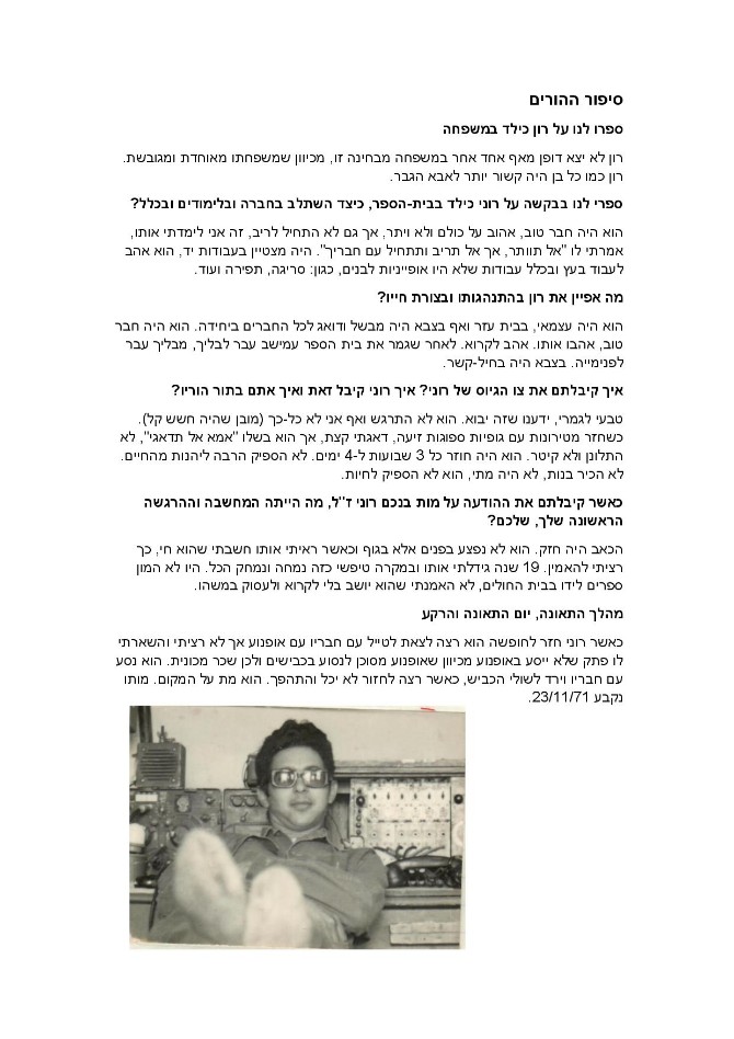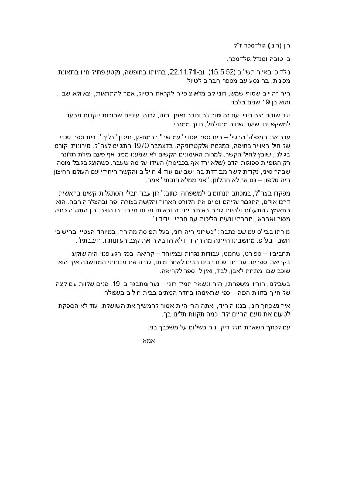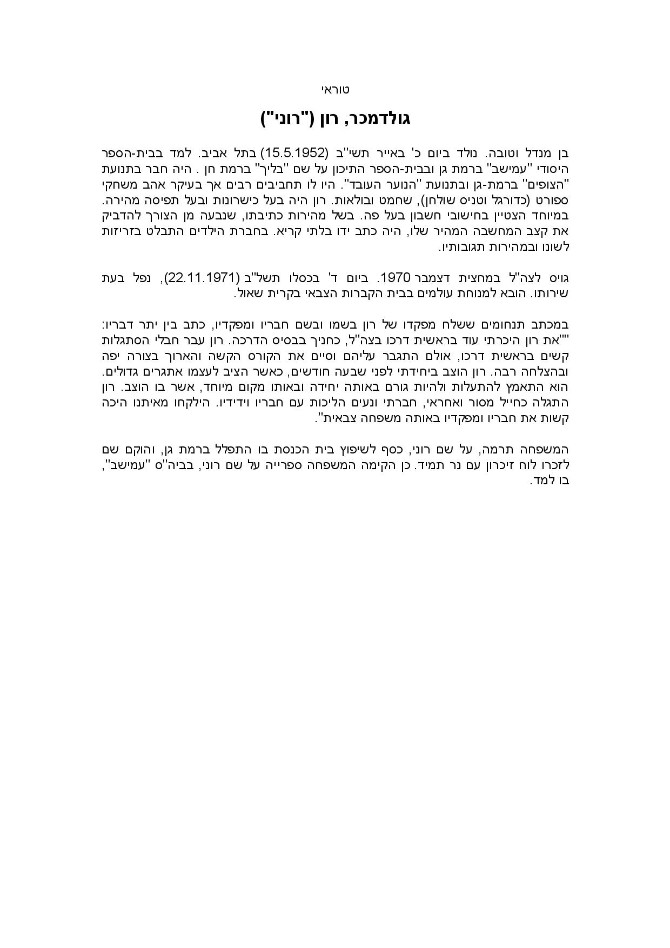 תיק נופל - עבודת הנצחה תיכון אלון ר"ג