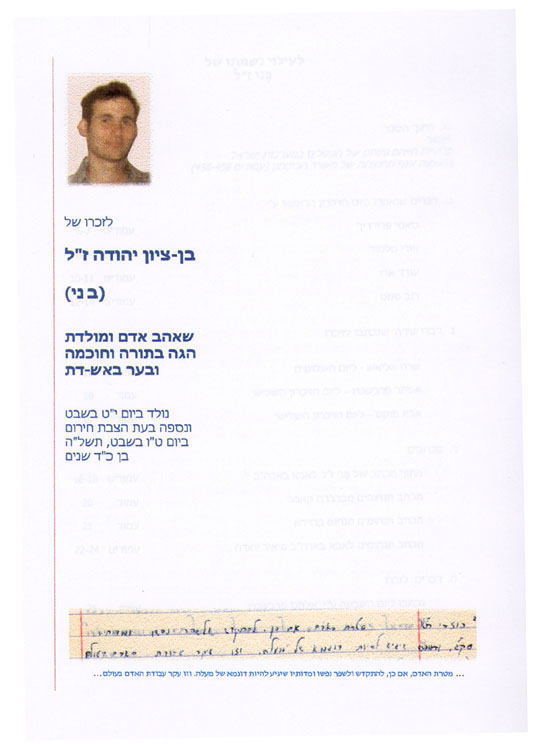 עמוד השער של החוברת לזכרו