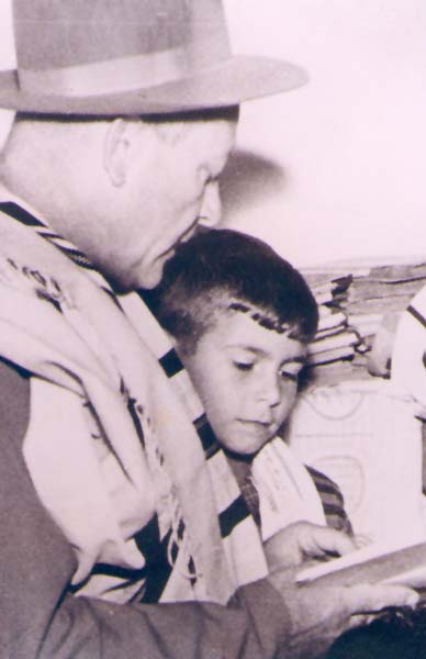 בגיל 7 (1959) קורא בתורה עם אביו ביום הושענא רבה