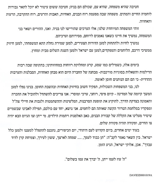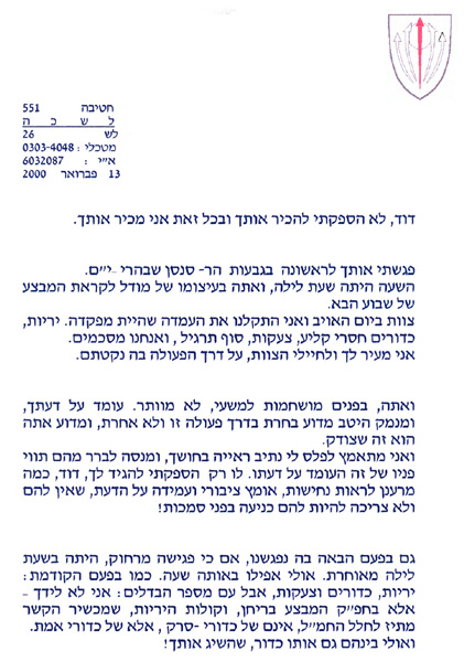 מכתב שכתב חייל ששירת עם דוד