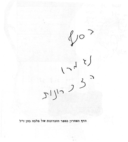הדף האחרון מספר הזכרונות של מלכה כהן ז"ל