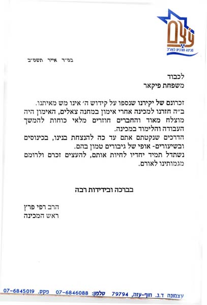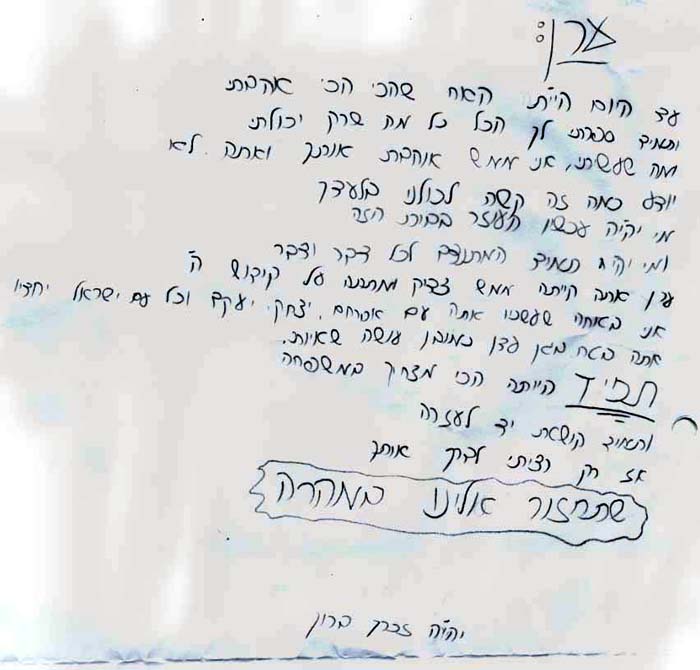 רשימות לזכרו ומכתבי תנחומים