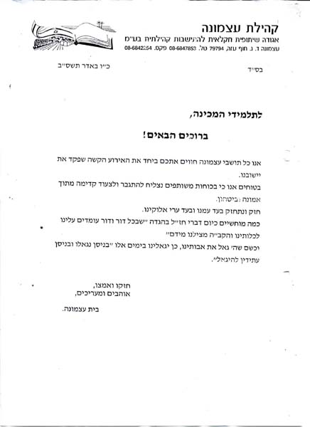 דבר יו"ר יד לבנים