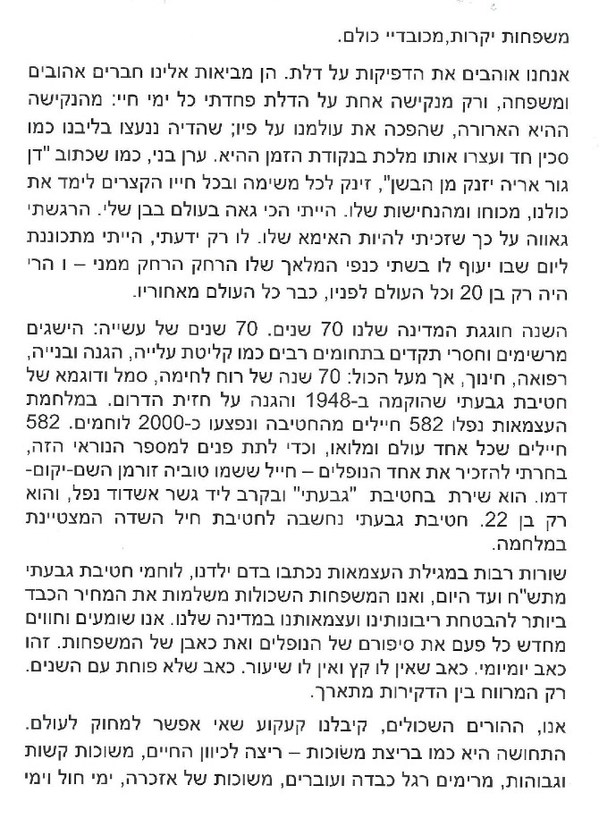 דבר יו"ר יד לבנים