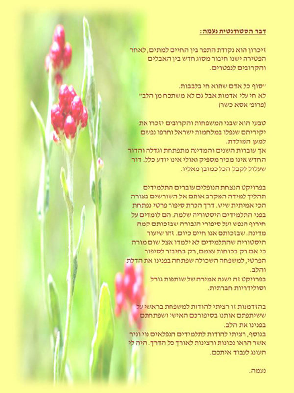 חוברת תלמידים לזכרו