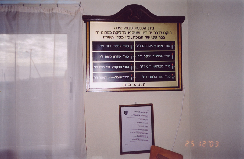 בית הכנסת במבוא שילה - נבנה לזכר 8 חיילים שנספו באסון הדליקה