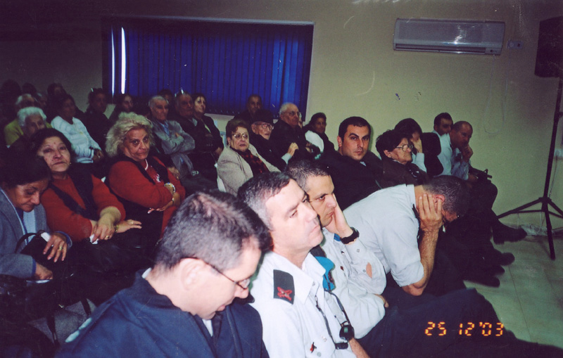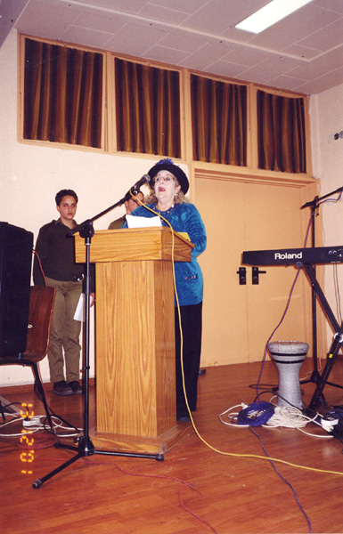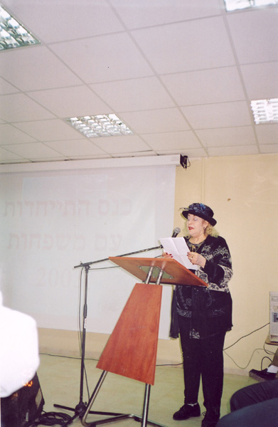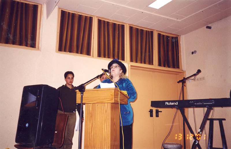 אימו קוראת שירים לזכרו באזכרה בבית העירייה בכפר סבא