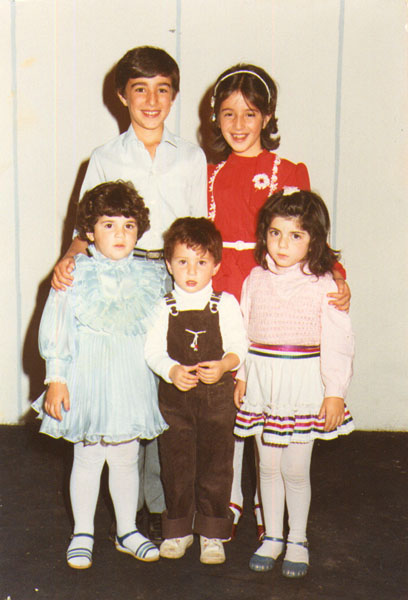בגיל 10 עם אחותו ובני דודים