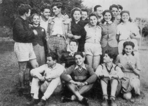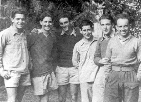 פרץ (עומד משמאל) עם קבוצת היער שבוע לפני העלייה