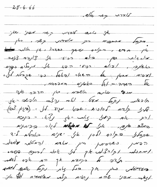 מכתב מגדוד 50 לגרעין בגדות - 25.6.66 (עמוד 1)