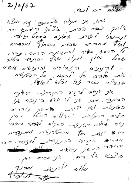 מכתב מגדוד 50 לגרעין בגדות - 11.6.66 (עמוד 1)